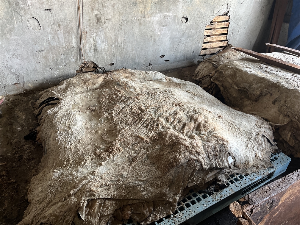 塩漬けした原皮は、もちろん「皮」の状態です。