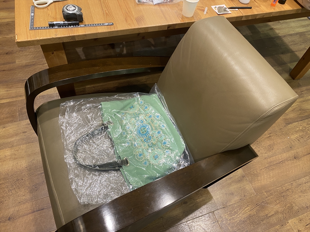 一人掛けの座面も交換。えぇ~バッグ!? 実はこちらもバッグハンドル(持ち手)交換しました。こんなんもできます。