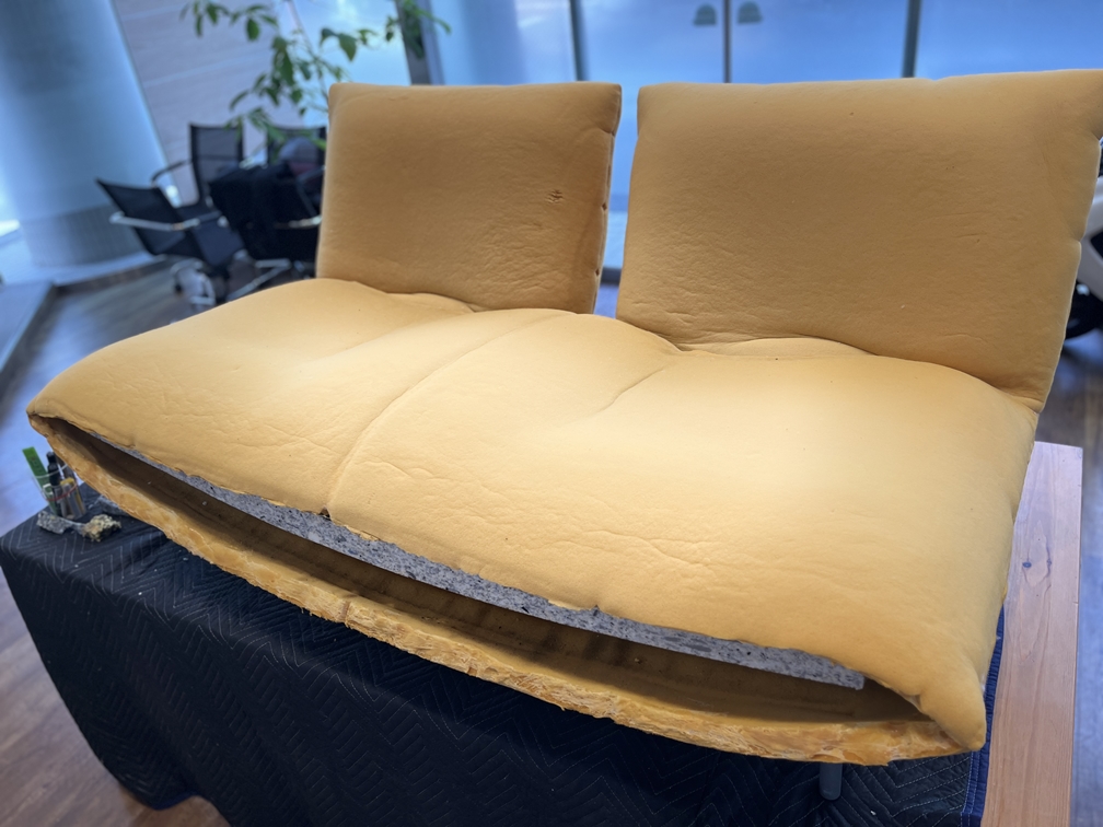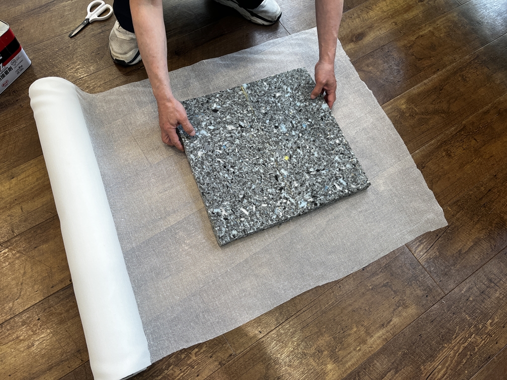 今回は座面がへたってるとのことでウレタンの補充。しかしそのまま使用すると経年でボロボロするのでメッシュ生地で被覆。